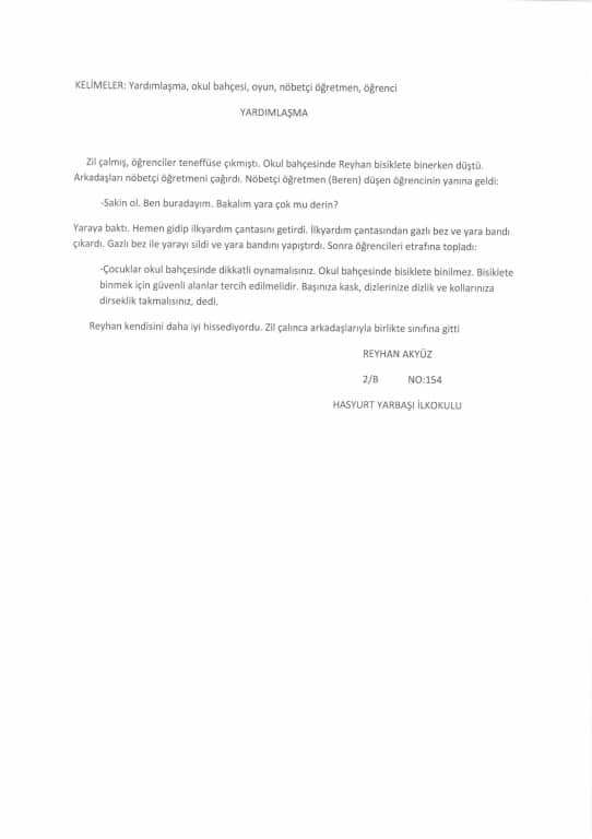 Faaliyet: Öğrencilere birkaç kelime veya bir tema verilir ve bu kelimeleri veya temayı kullanarak kısa bir hikâye yazmaları istenir. Öğrenciler, bu hikâyeyi sınıf arkadaşlarıyla birlikte bir tiyatro oyunu şeklinde sahnelerler. Bu etkinlik, yaratıcı düşünme, ekip çalışması ve kendini ifade etme becerilerini güçlendirir.